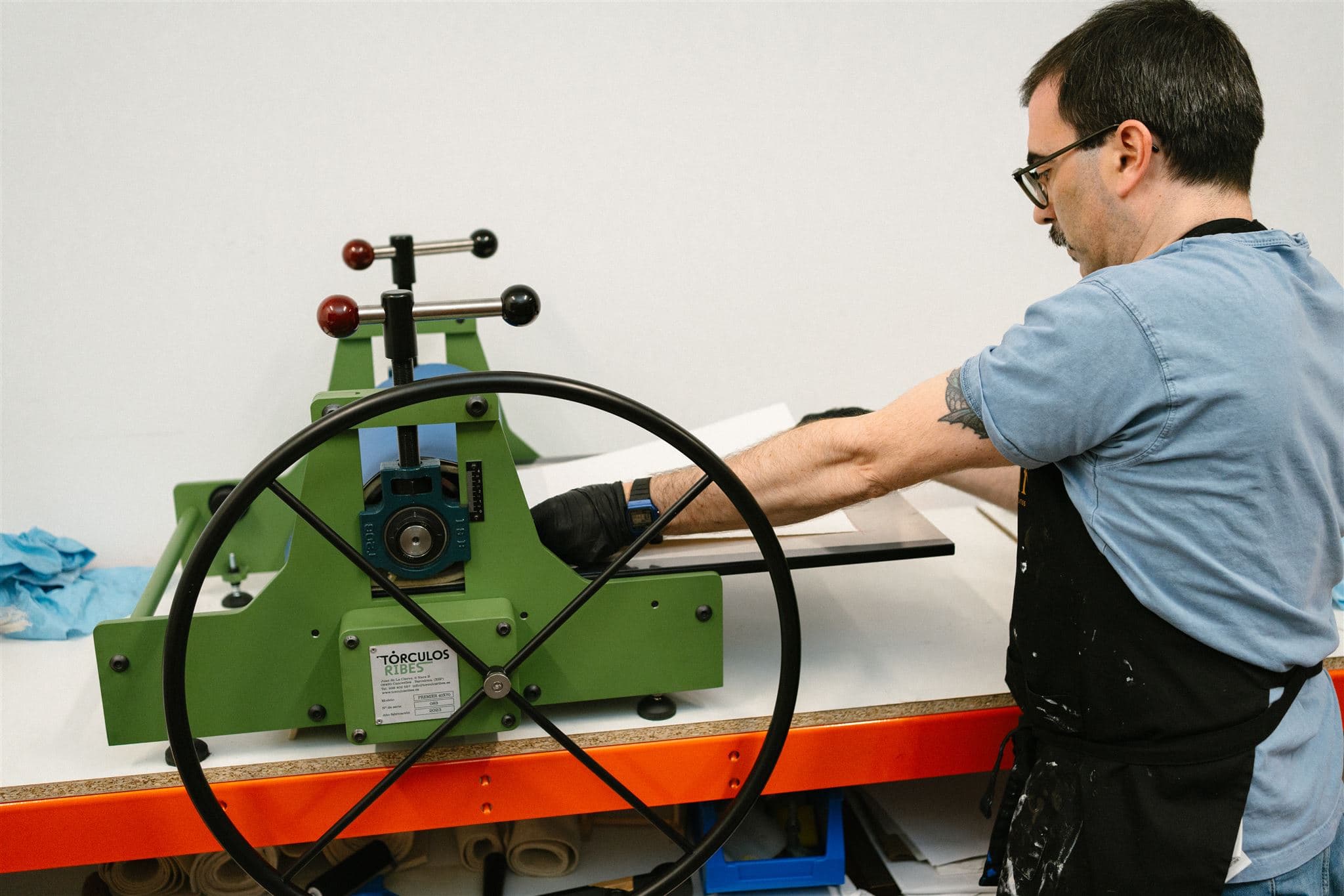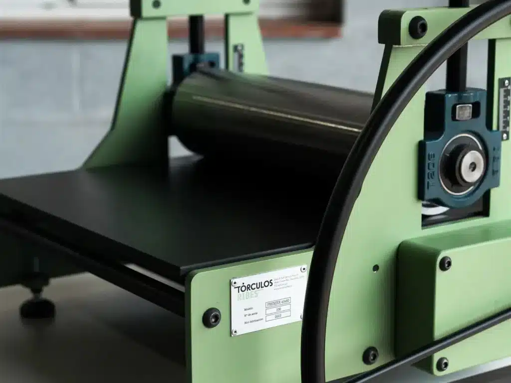 El control de la presión se realiza mediante un husillo M20 de paso fino, y la lectura de presión, a través de una regla con una precisión de 1 mm, ofrece ajustes precisos y controlados para garantizar resultados consistentes. Con un peso total de solo 57 kg, el Premier 40 es ligero y fácil de manejar, lo que lo convierte en la opción perfecta para artistas y talleres que buscan un tórculo compacto y eficaz.